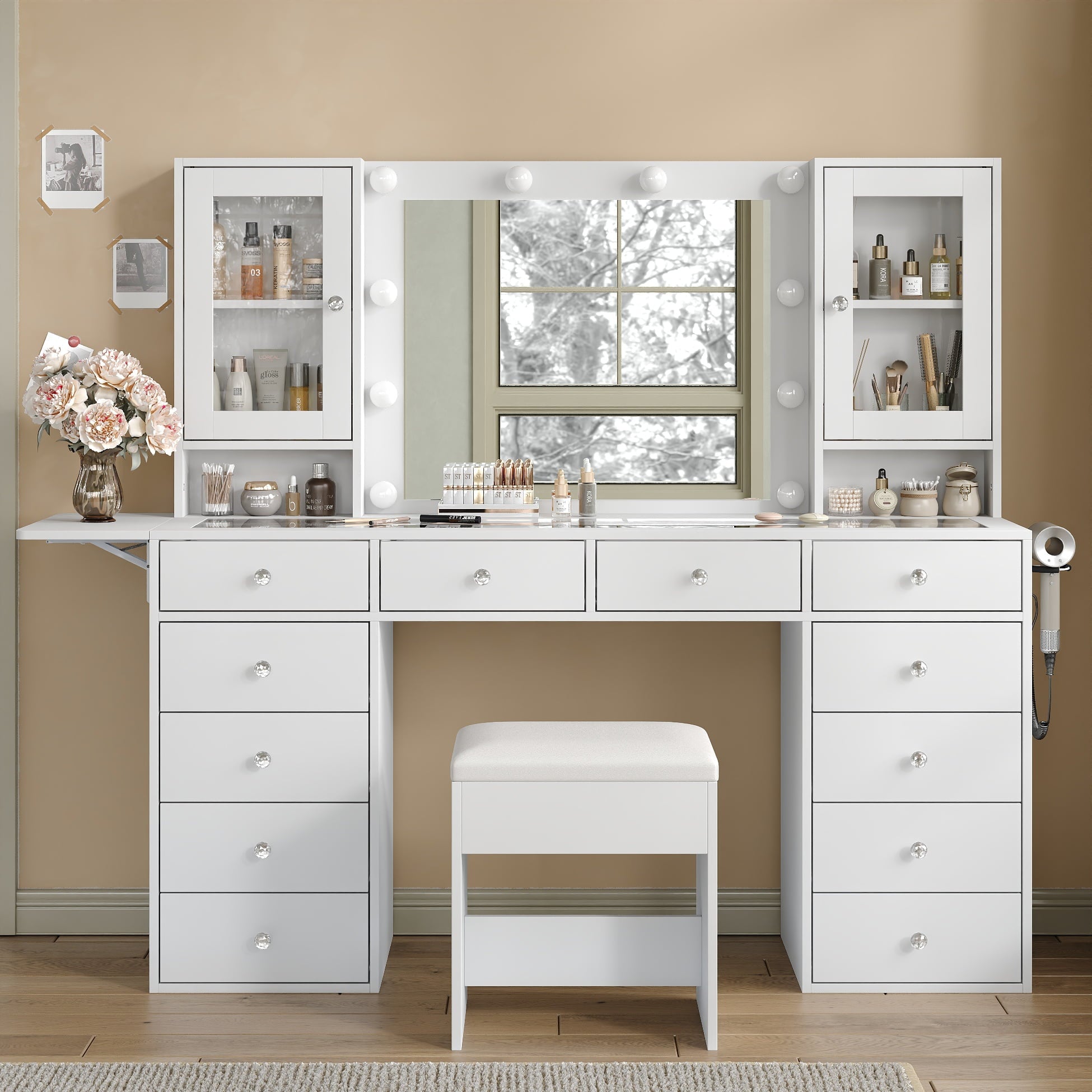 Yanosaku VD016 Bedroom Makeup Vanity desk with LED Mirror, 13 Drawers